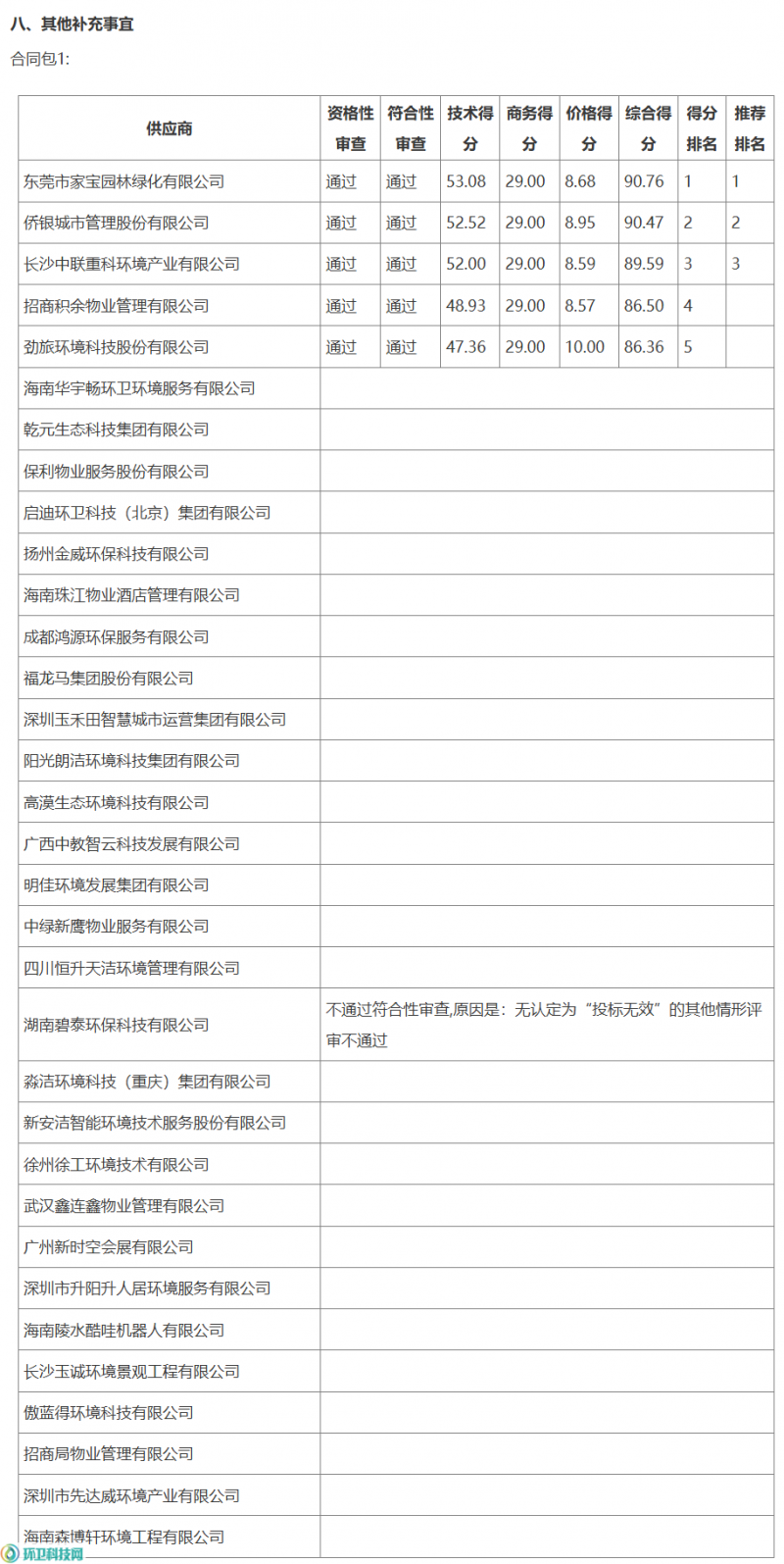 中标公告显示,该项目共吸引33家企业参与投标,排名前5的企业综合得分差距较小,竞争态势激烈。最终,东莞市家宝园林绿化有限公司以90.76分的综合成绩,凭借微弱优势位列综合得分排名第一。